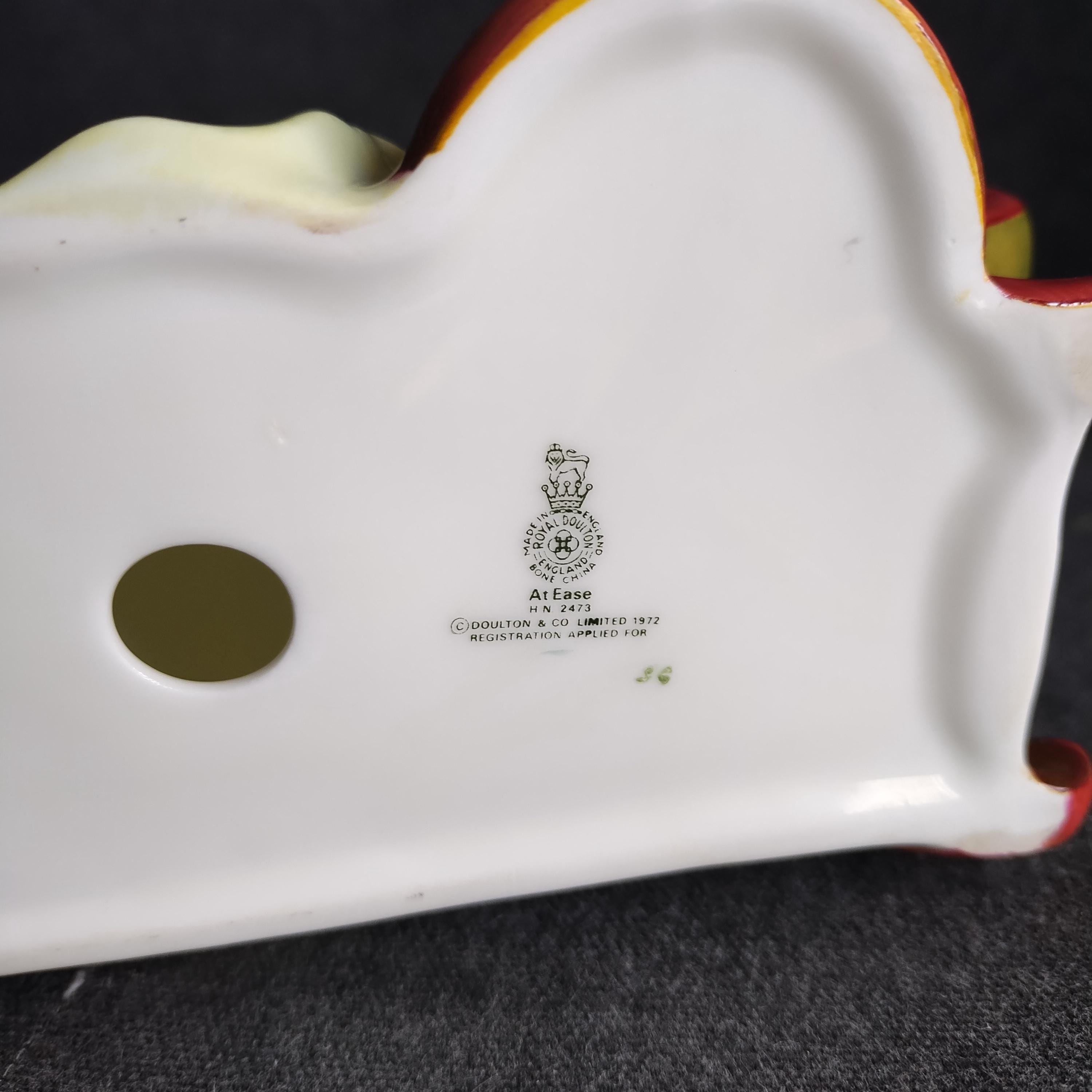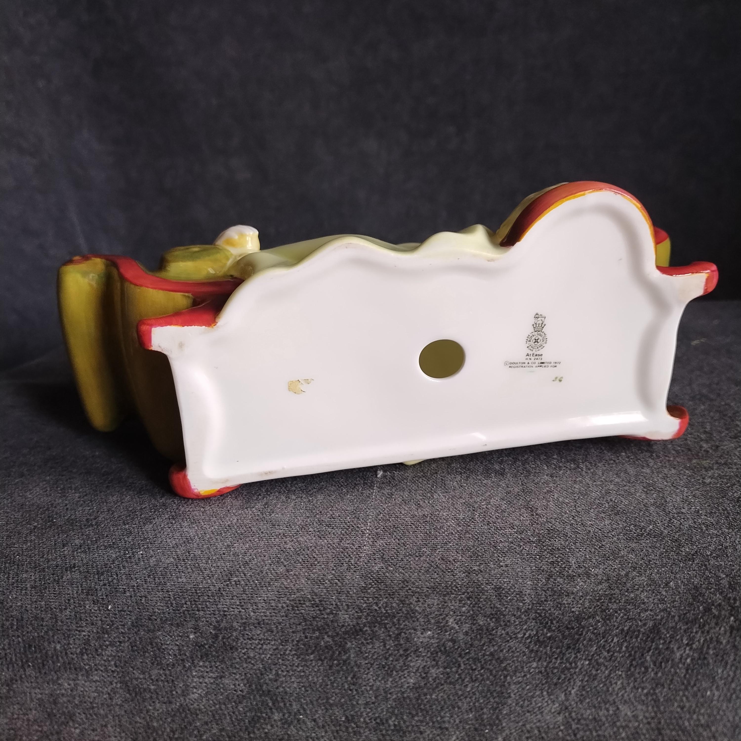 Reminiscent of "repose" this Doulton features an elegant lady on a sleigh back fainting couch eating a piece of fruit. Lots of great colours and details.