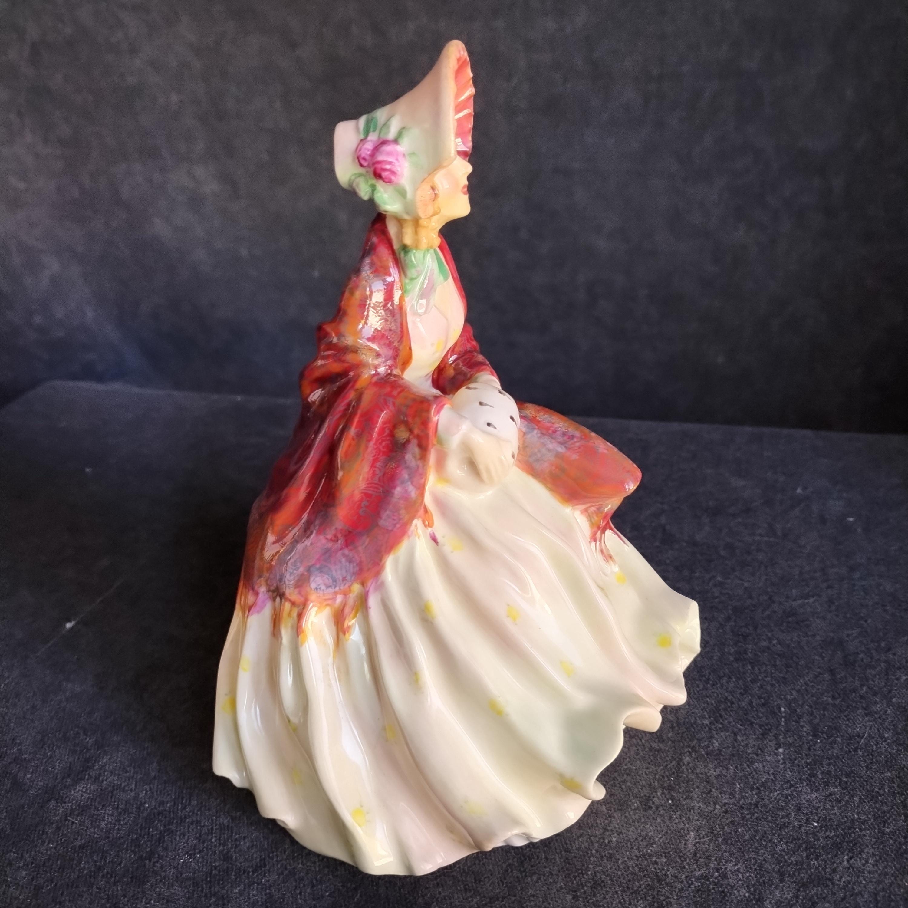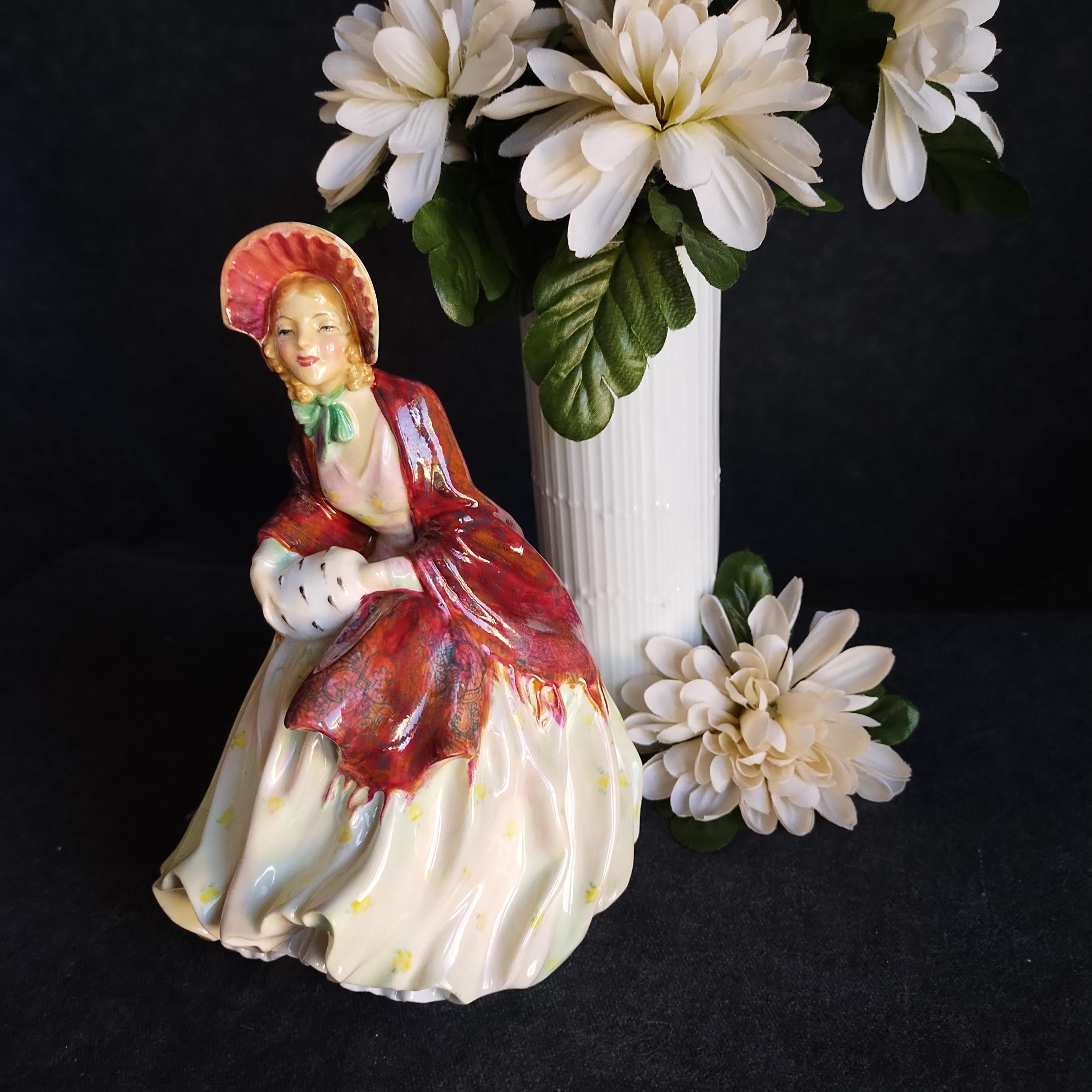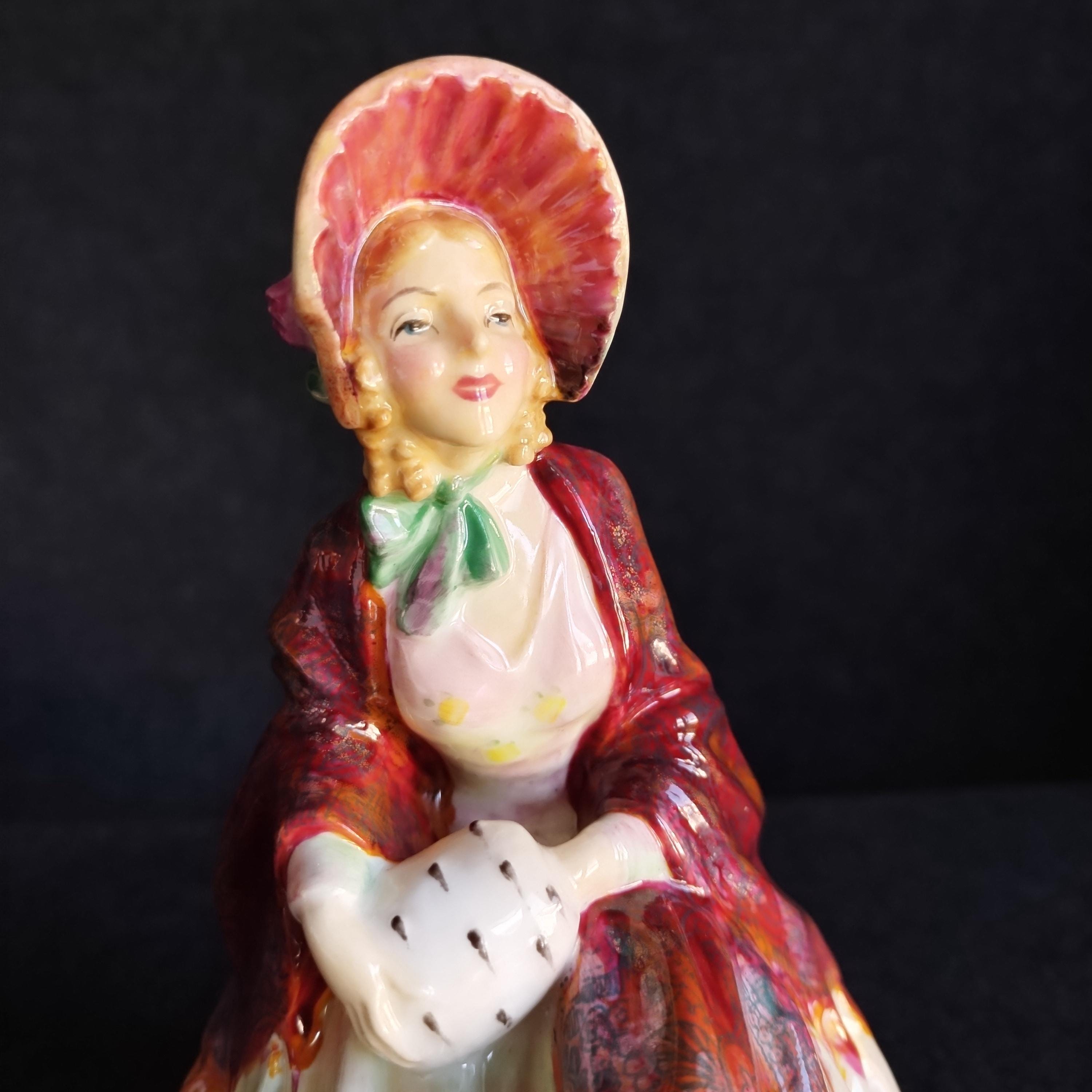 Reminiscent of Paisley Shawl, this Doulton features an amazing hand painted cloak and an ermine fur muff. Delightful details in this early production piece.