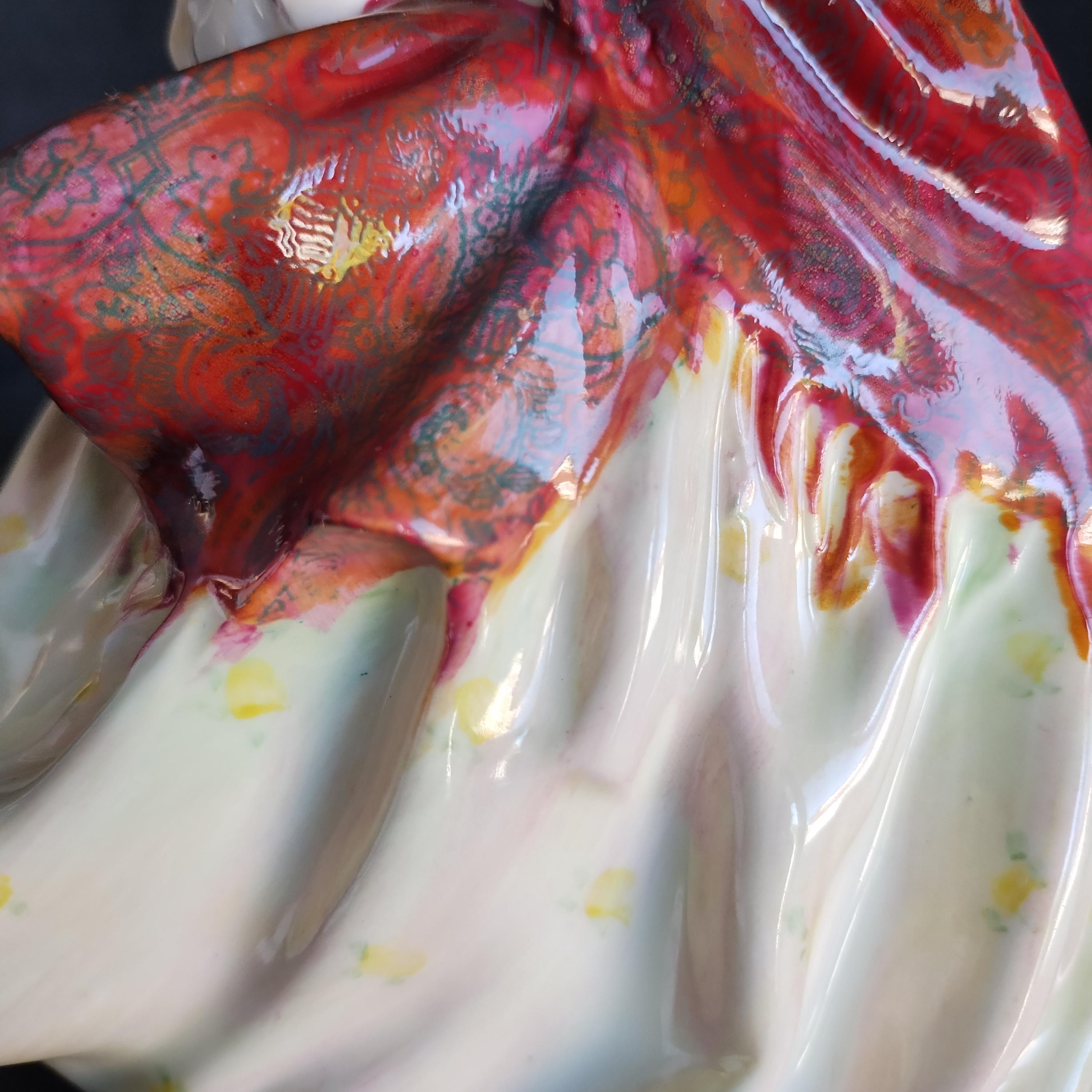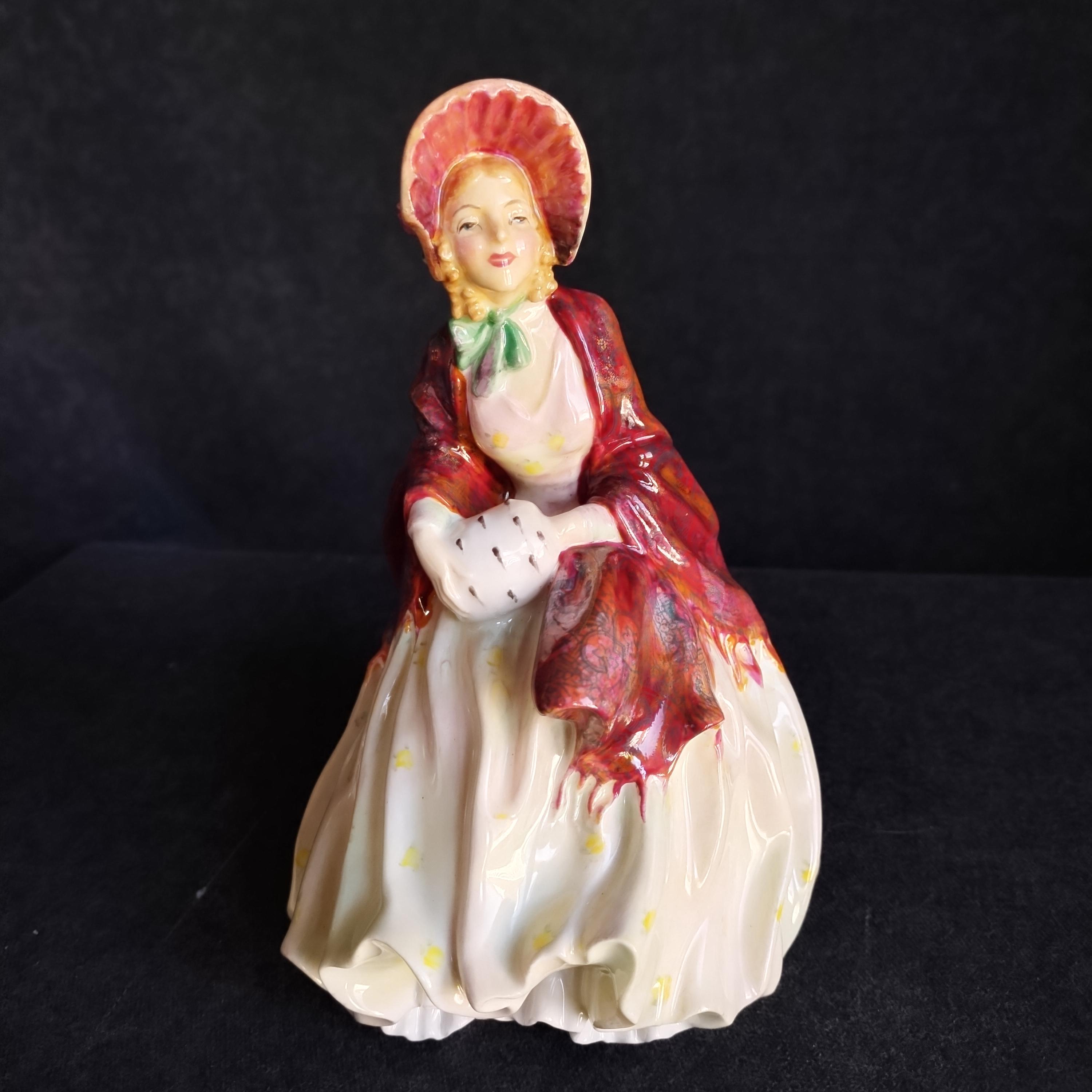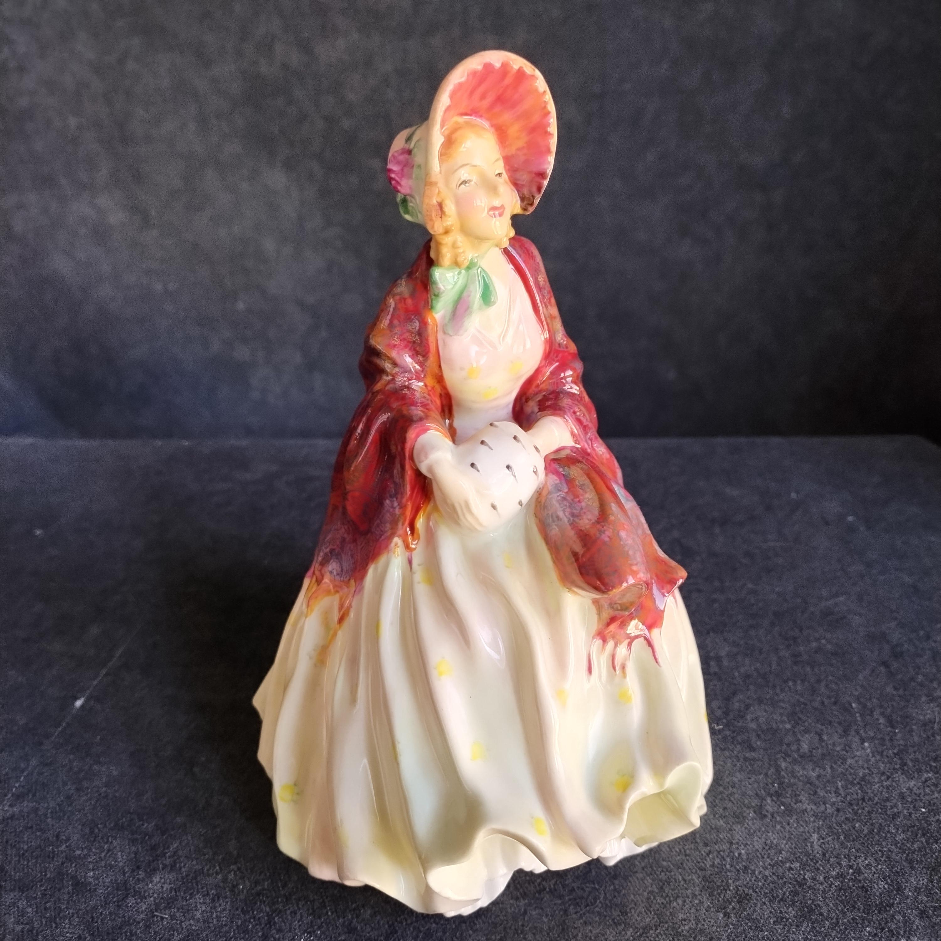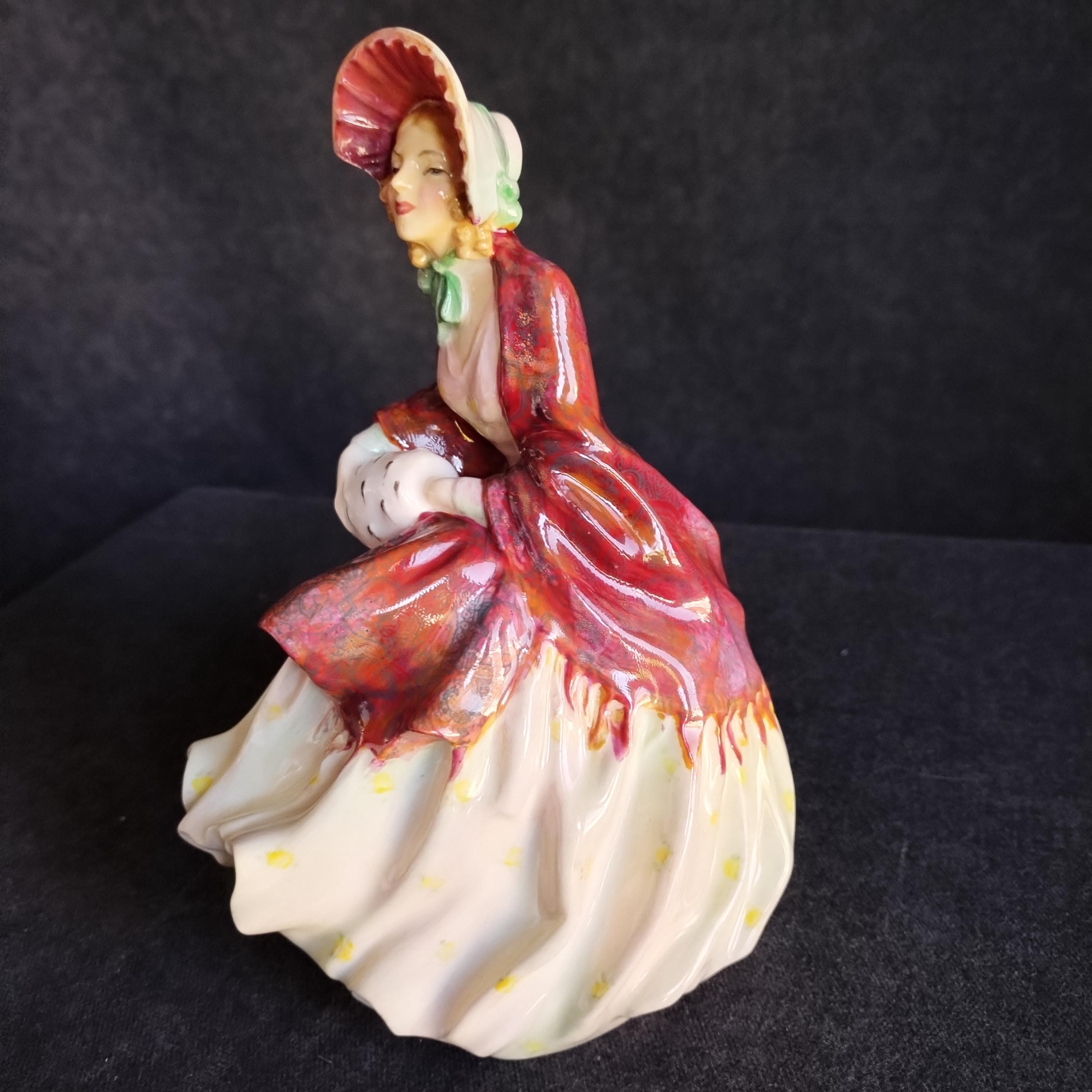 Reminiscent of Paisley Shawl, this Doulton features an amazing hand painted cloak and an ermine fur muff. Delightful details in this early production piece.