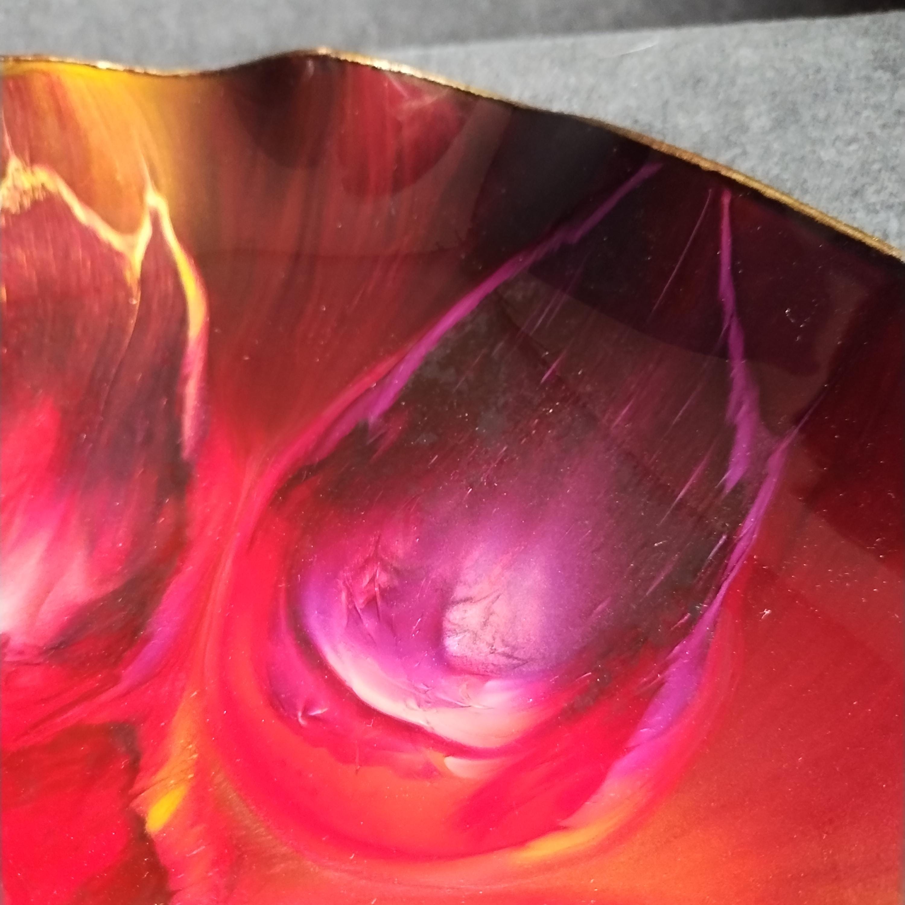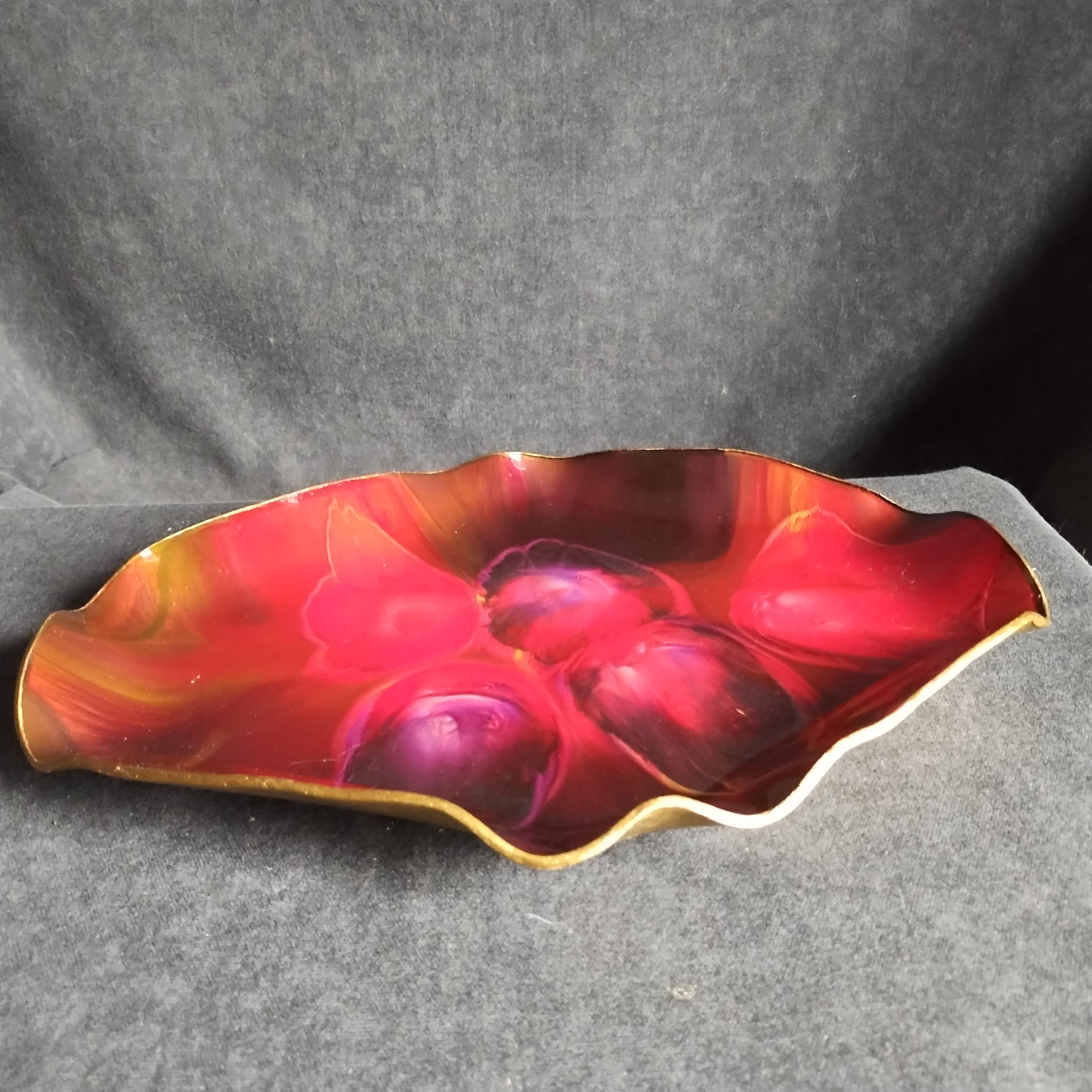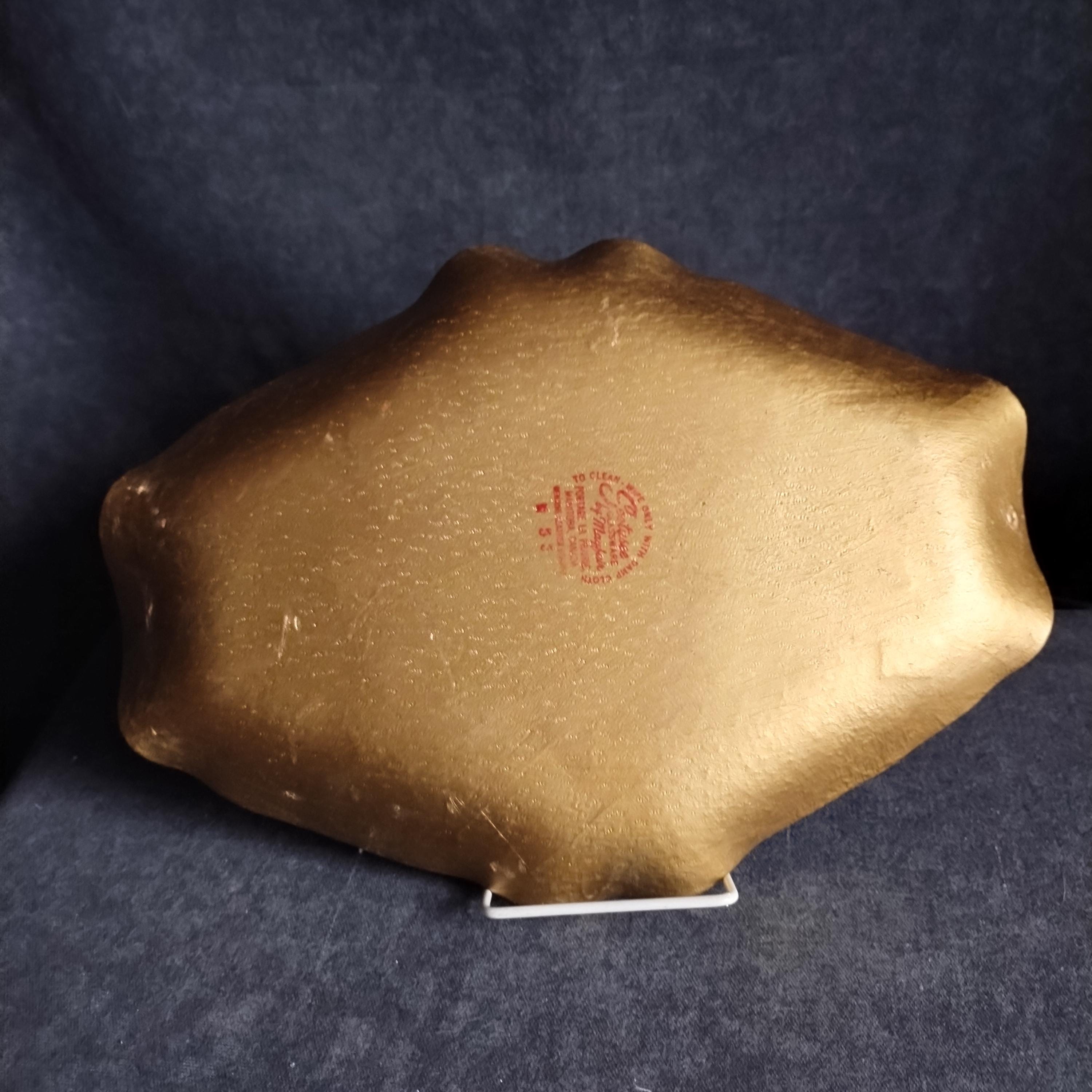 Beautiful vibrant colours make this SeeTuSee tray perfect for serving or simply as a decor statement for your home. Produced by Mayfair in Portage la Prairie, Manitoba, Canada - this unique tray is hand painted glass backed with genuine leather. Produced from 1960 to 1975, the process was perfected by George Hill and Foss Giffin who were inspired by Mexican glass painters. Safe for food use. To clean simply wipe the glass surface with a damp cloth. Leather back protects furniture from scratches.