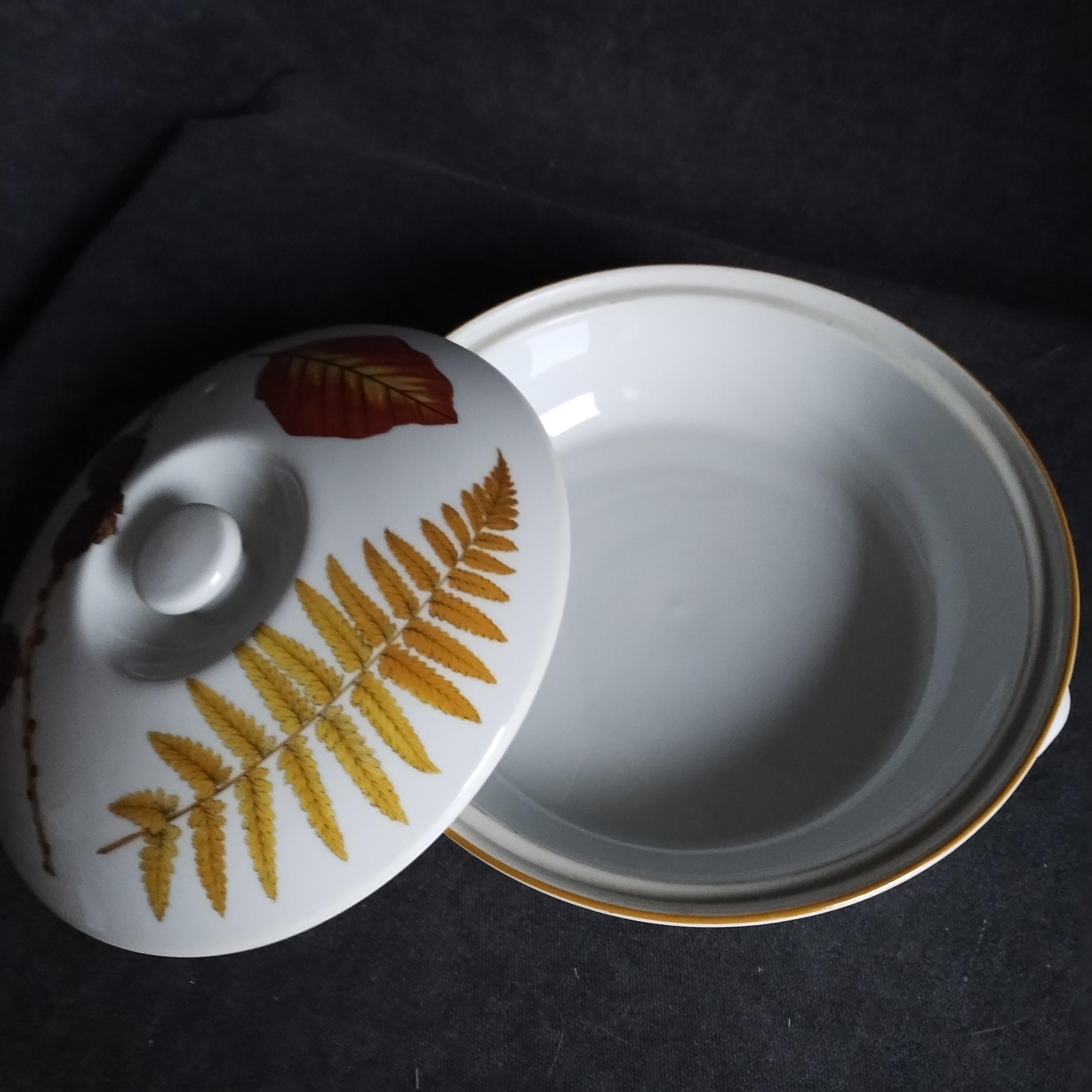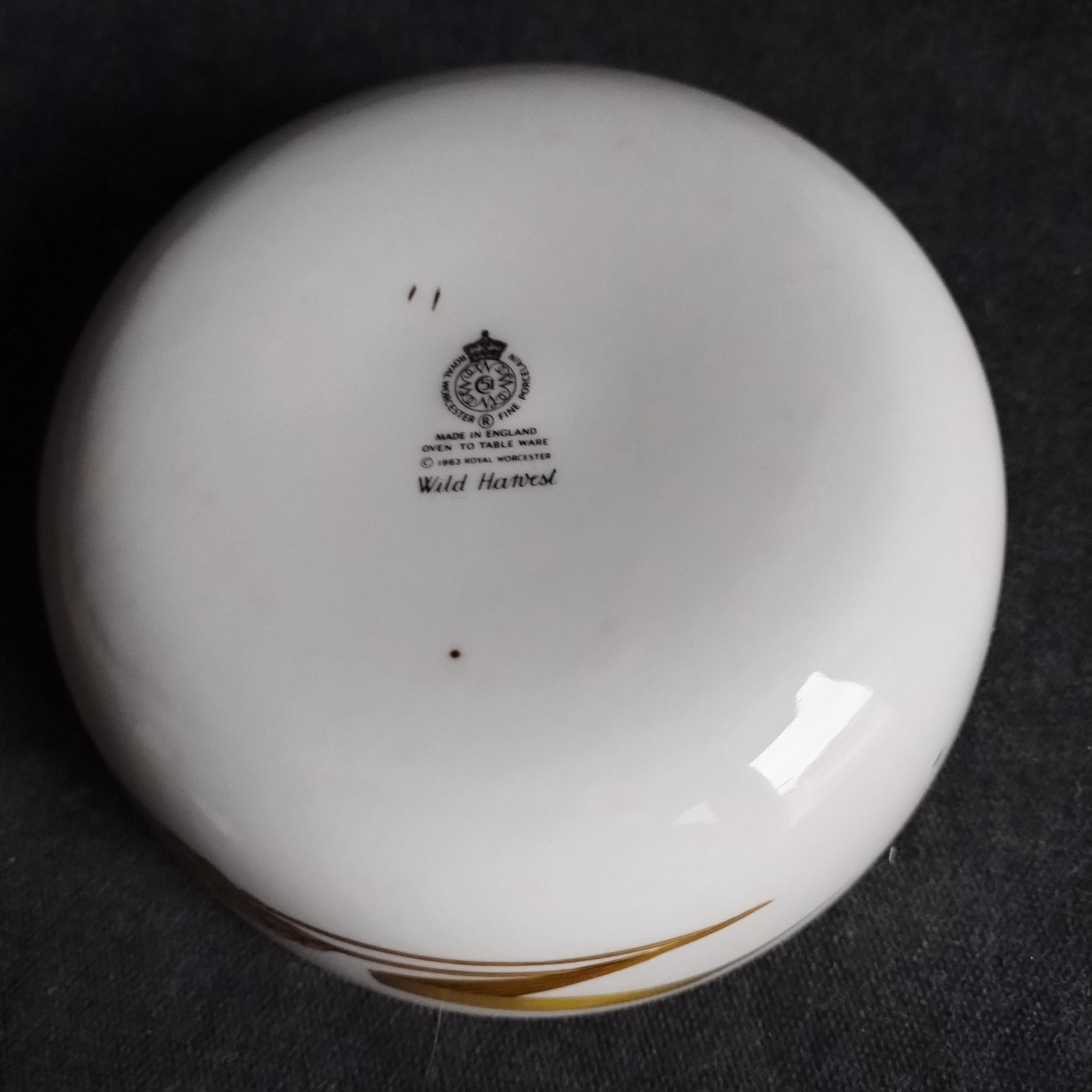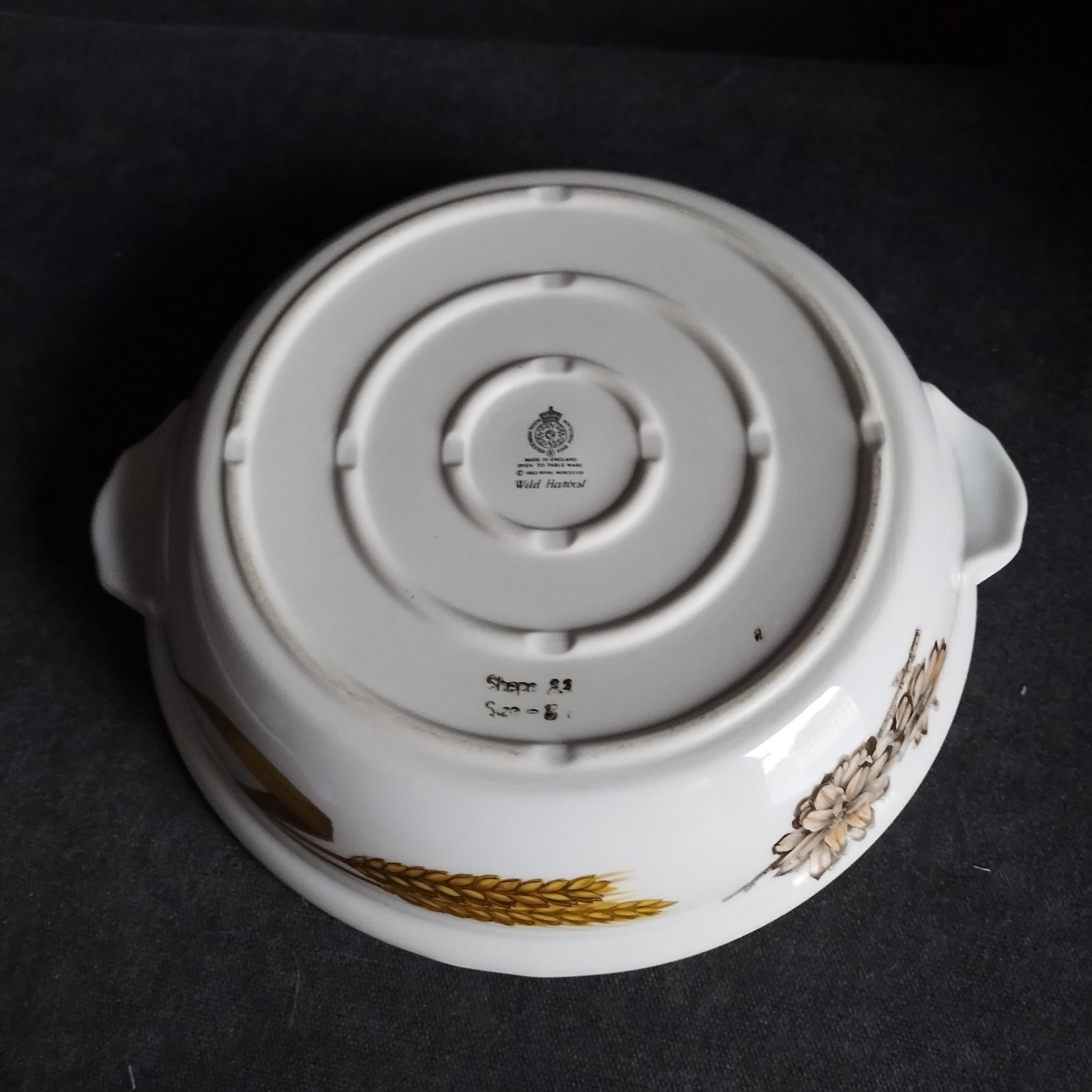 Crafted with the same care as Royal Worcester's well known pattern "Evesham", these high end oven to table ceramics will grace your table for years to come. "Wild Harvest" is ideal for your fall and Thanksgiving table but the versatility of these pieces will have you using them year round. Priced individually but please contact us as discounts are available for multi-purchase orders. Marked on base with Royal Worster backstamp and oven to table certification. Produced from 1963 to 2009, Royal Worcester "Wild Harvest' pattern features autumn leaves, wheat stalks, fern fronds, pine cones, and nuts.