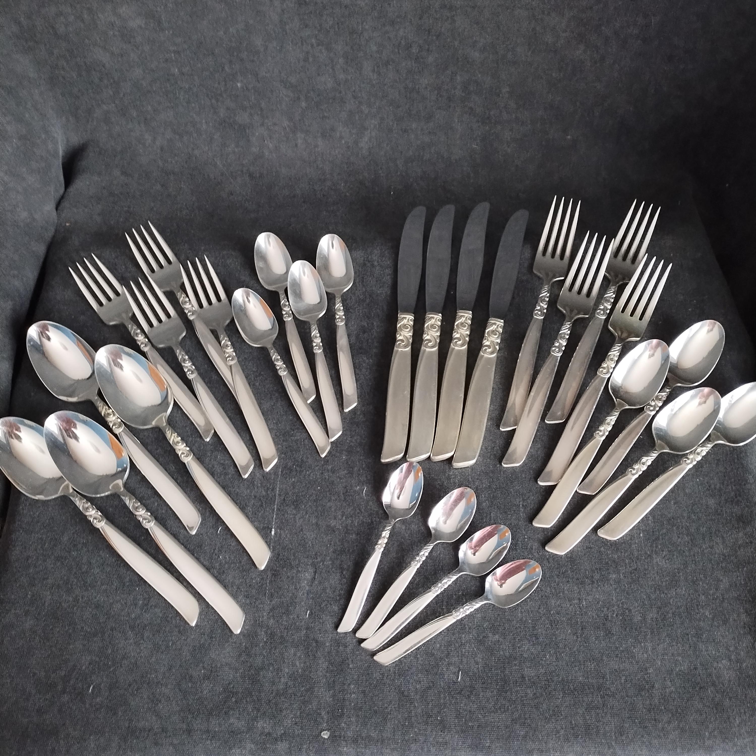 7 piece place setting for 4 from a large estate set of "South Seas" pattern Community Brand Oneida silverplate cutlery. Start your fine dining service or to add to your exsisting pattern. Serving pieces also available in other listings.