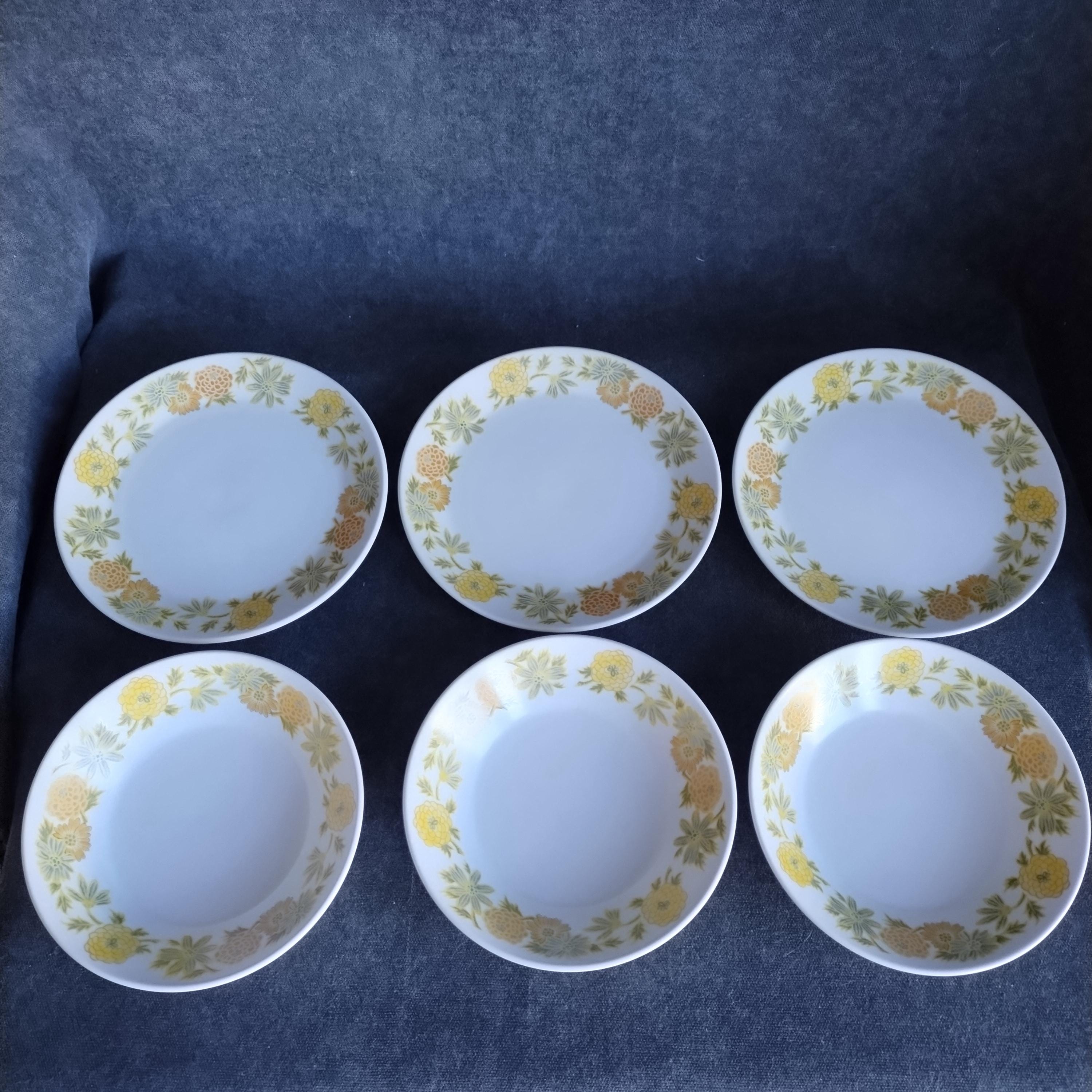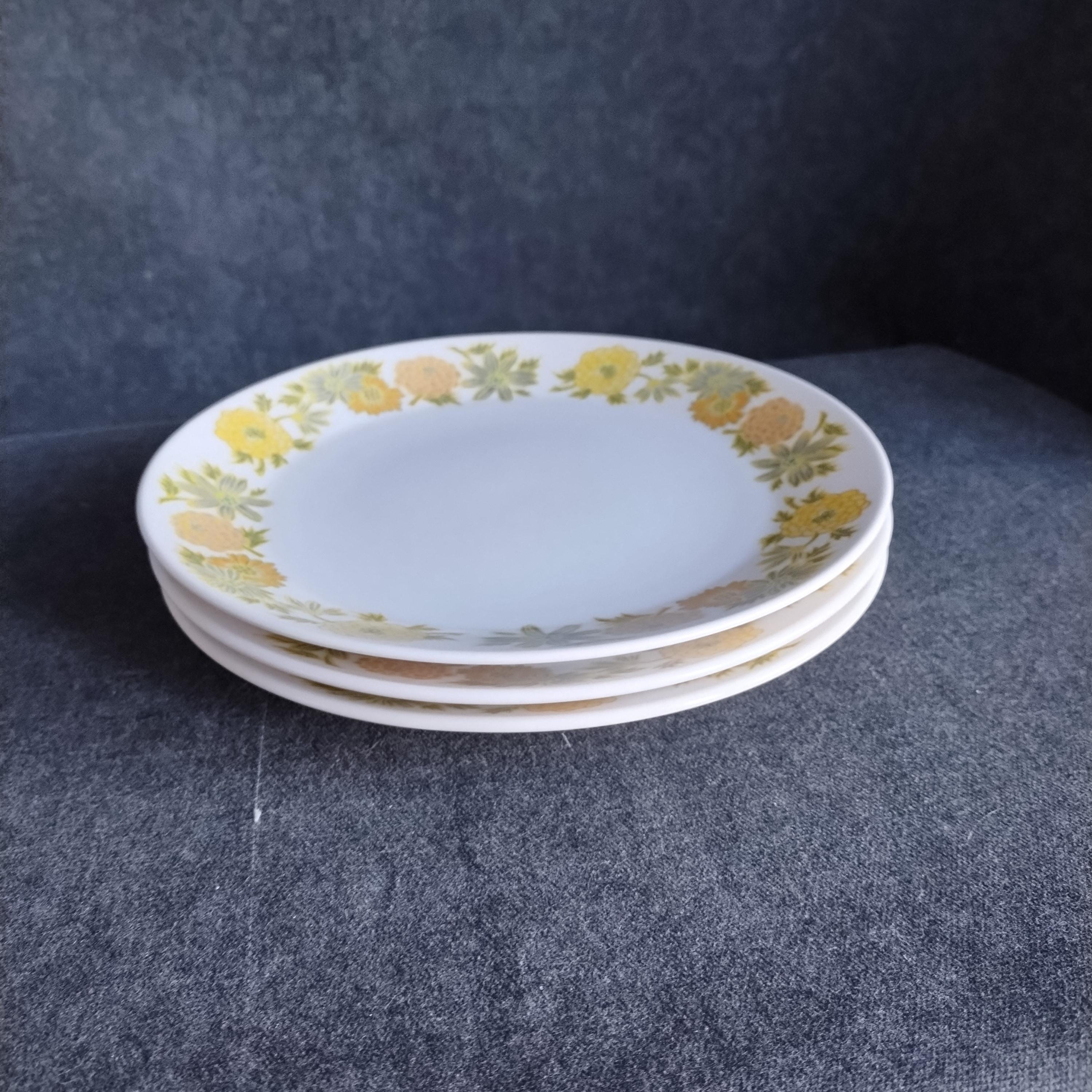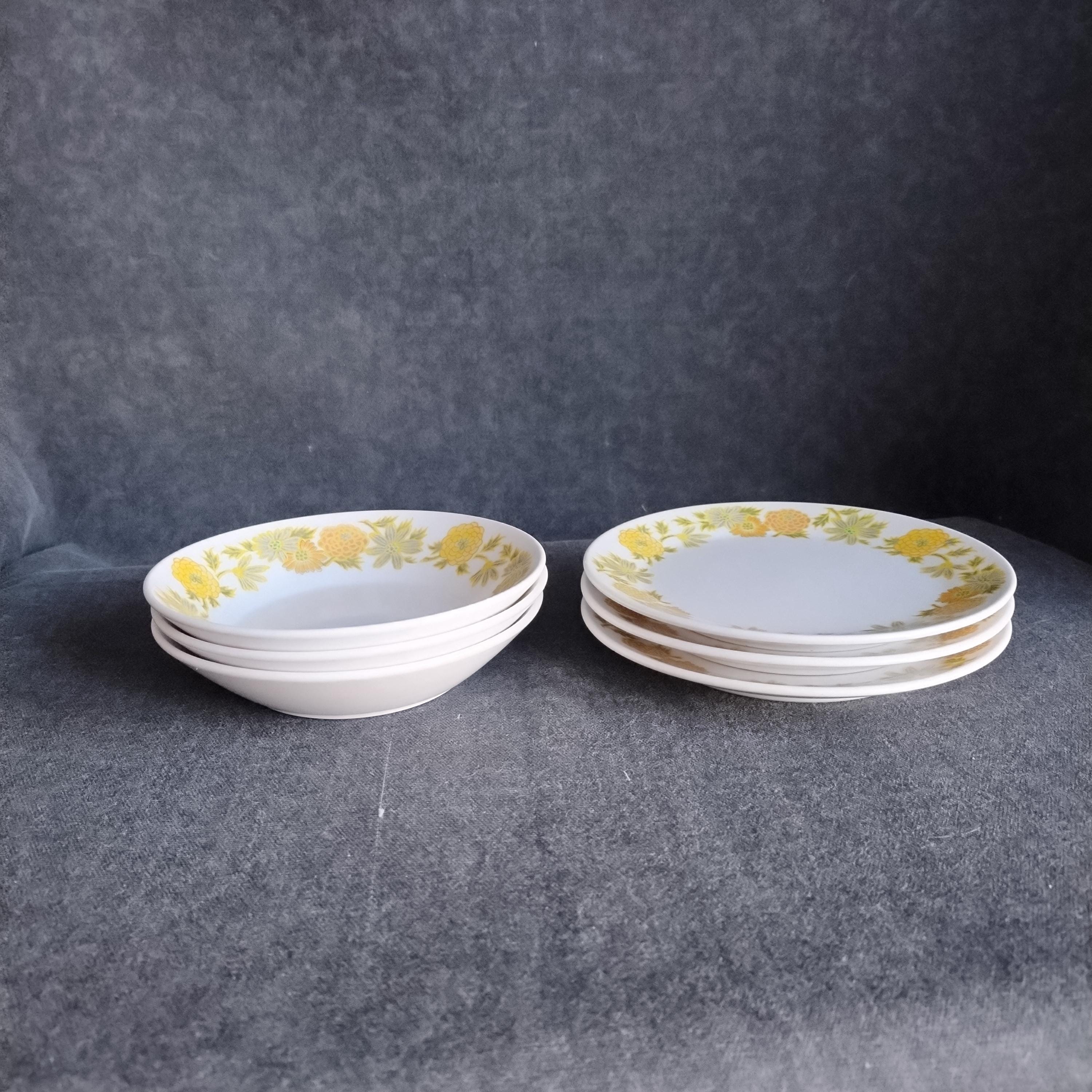 Cheerful retro dinnerware by Noritake Japan will add a touch of spring to your dining table. Sunny Side is from their Progressions dinnerware line created to be microwave and dishwasher safe. I love the smooth satin finish. This pattern features a wide boarder of yellow and orange flowers on a bright white background. Excellent durability - my own dishes are Noritake Progressions that still look great after nearly 10 years of everyday use.
