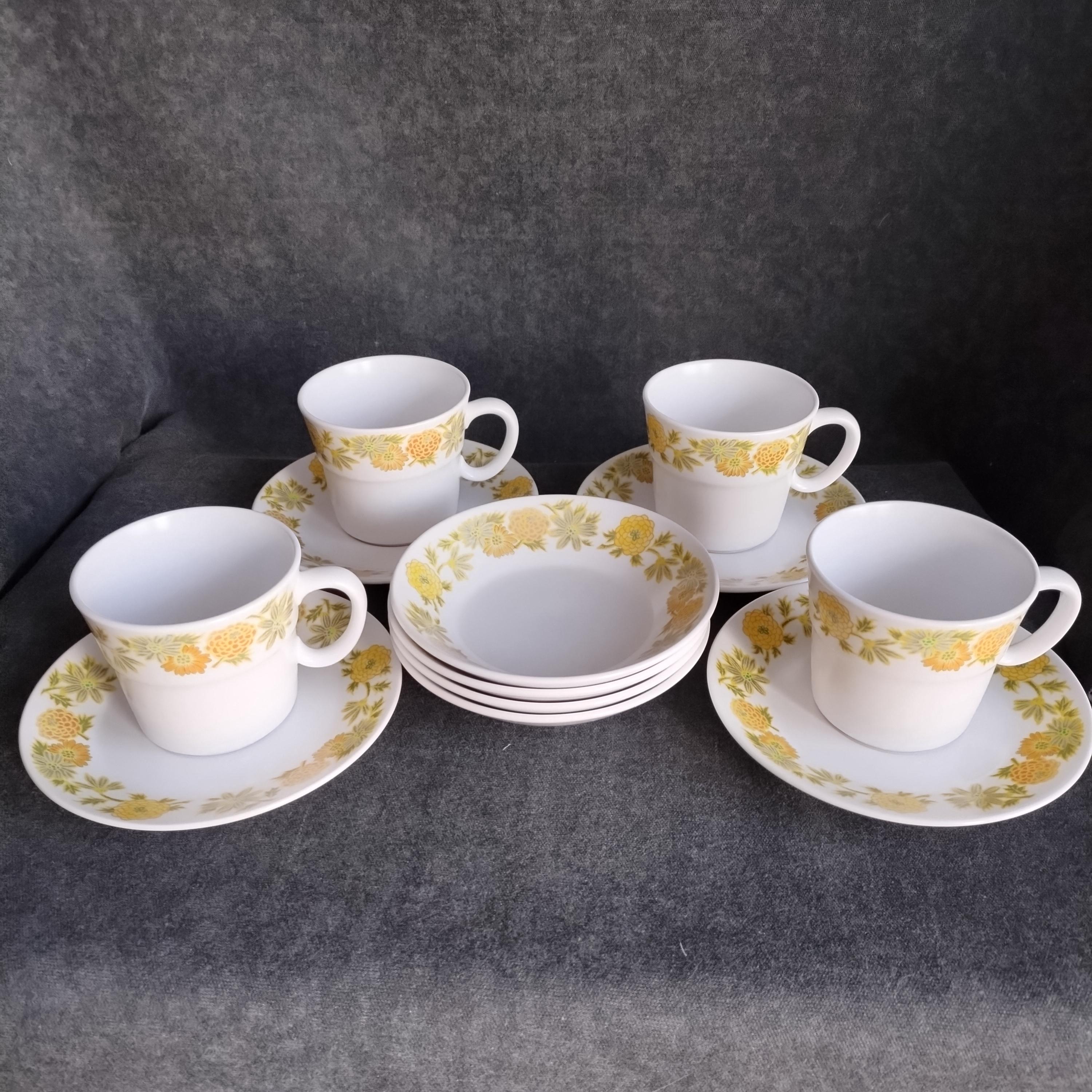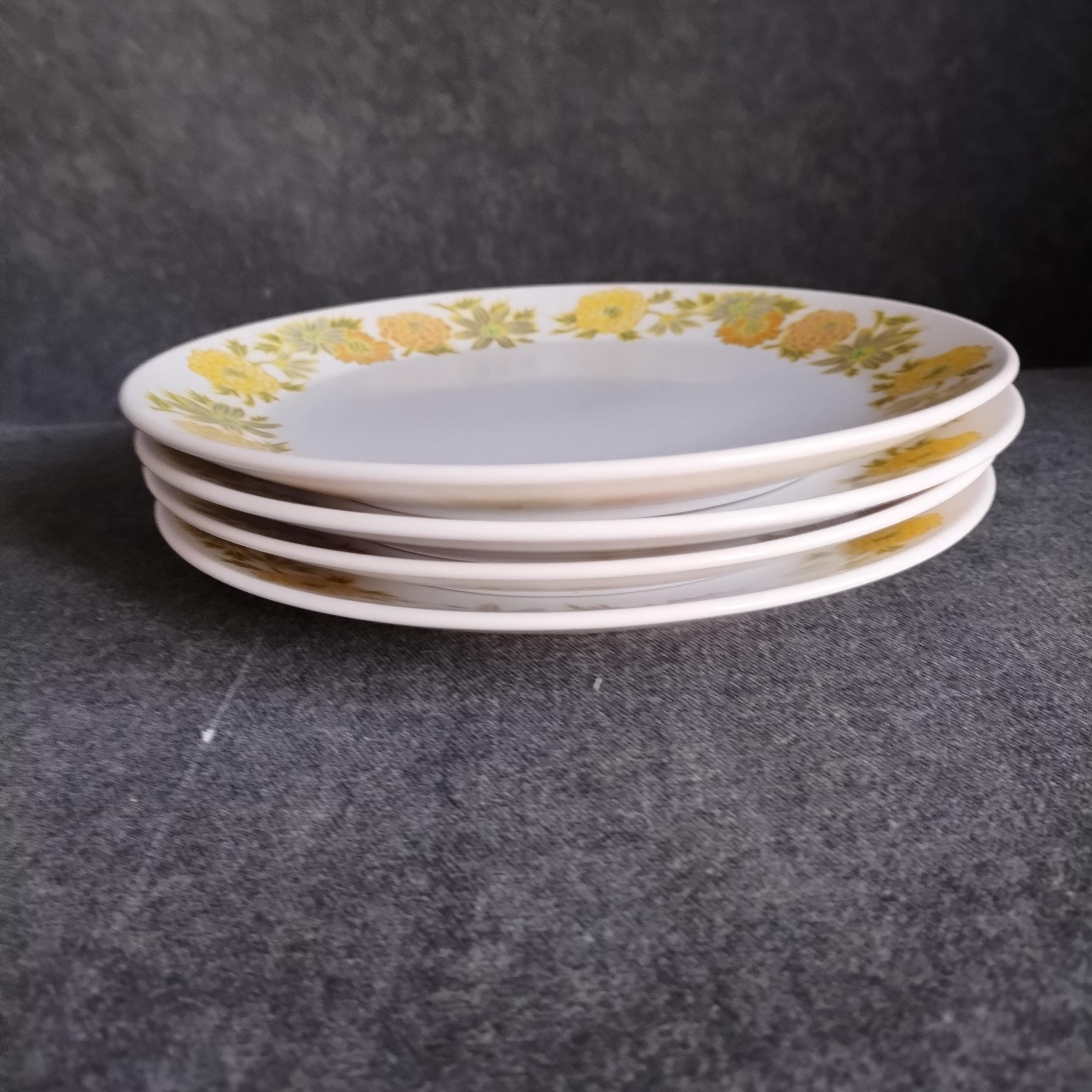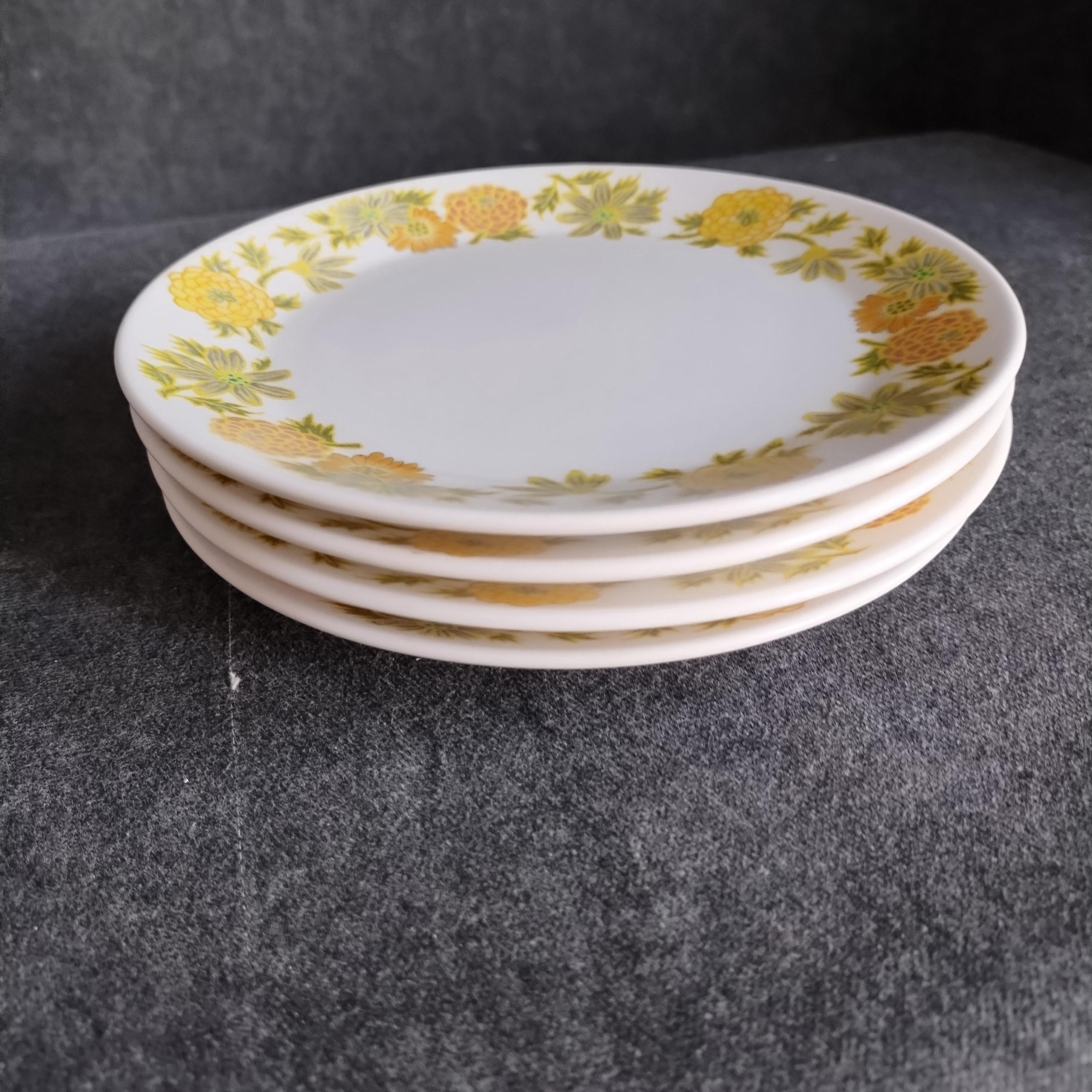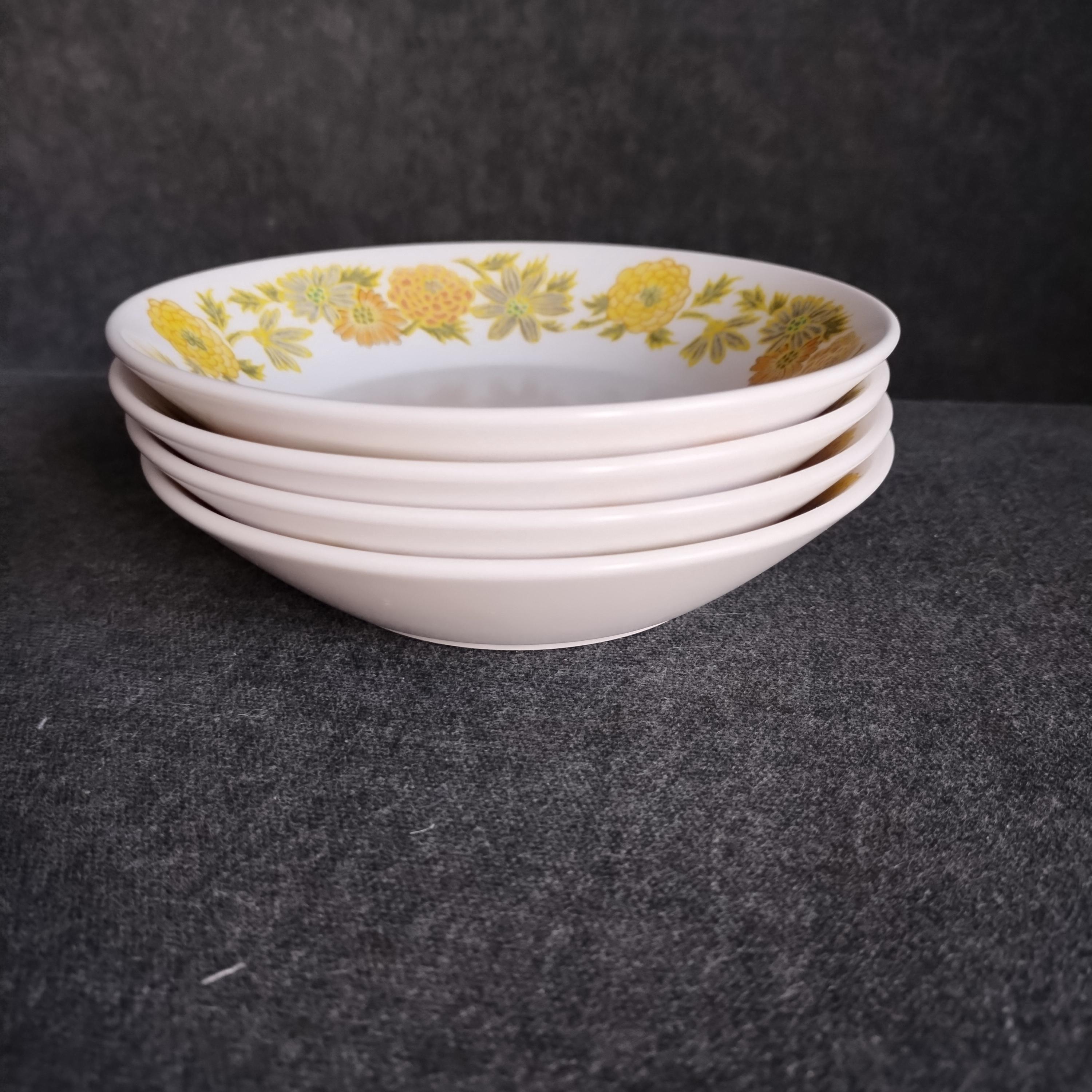 Cheerful retro dinnerware by Noritake Japan will add a touch of spring to your dining table. Sunny Side is from their Progressions dinnerware line created to be microwave and dishwasher safe. I love the smooth satin finish. This pattern features a wide boarder of yellow and orange flowers on a bright white background. Excellent durability - my own dishes are Noritake Progressions that still look great after nearly 10 years of everyday use.