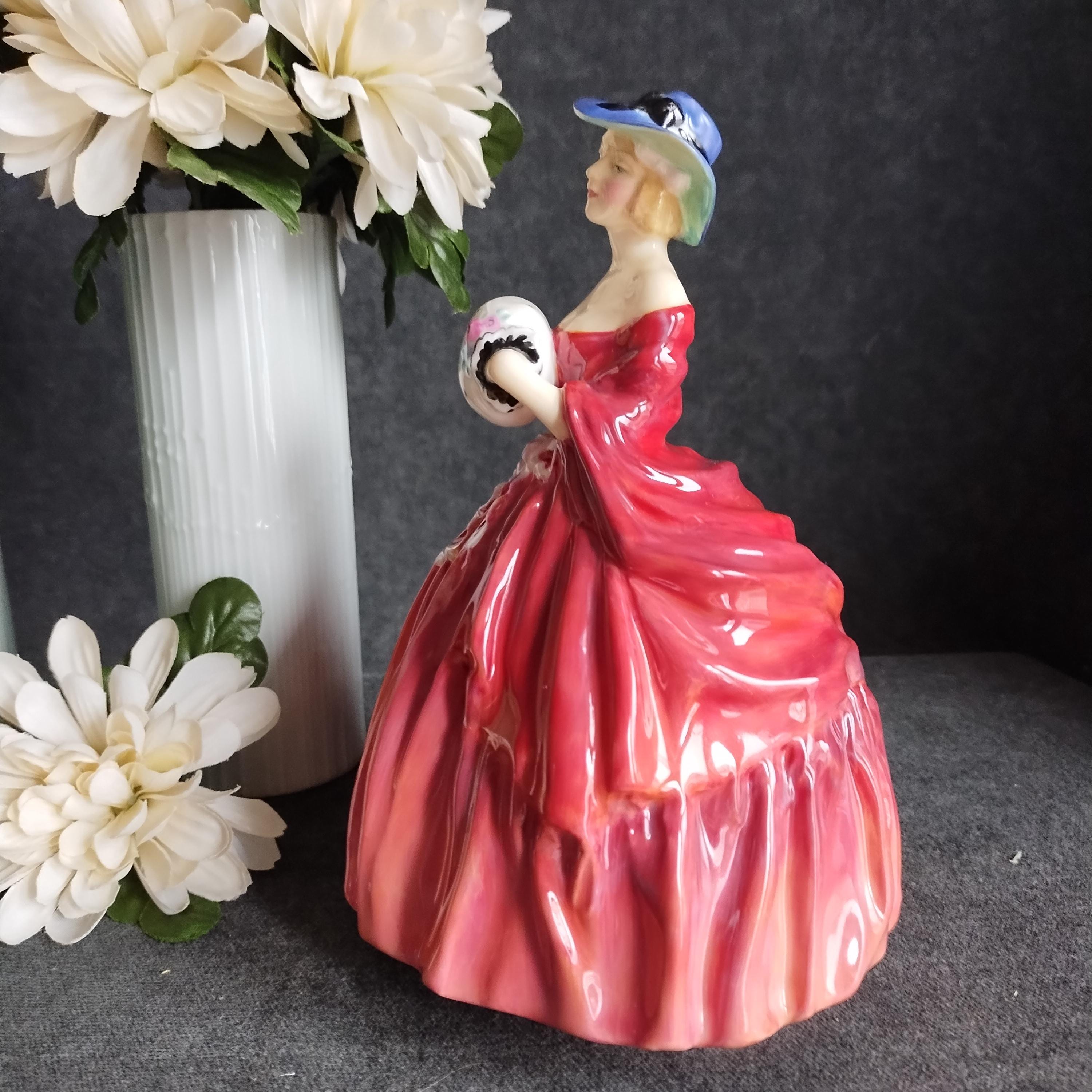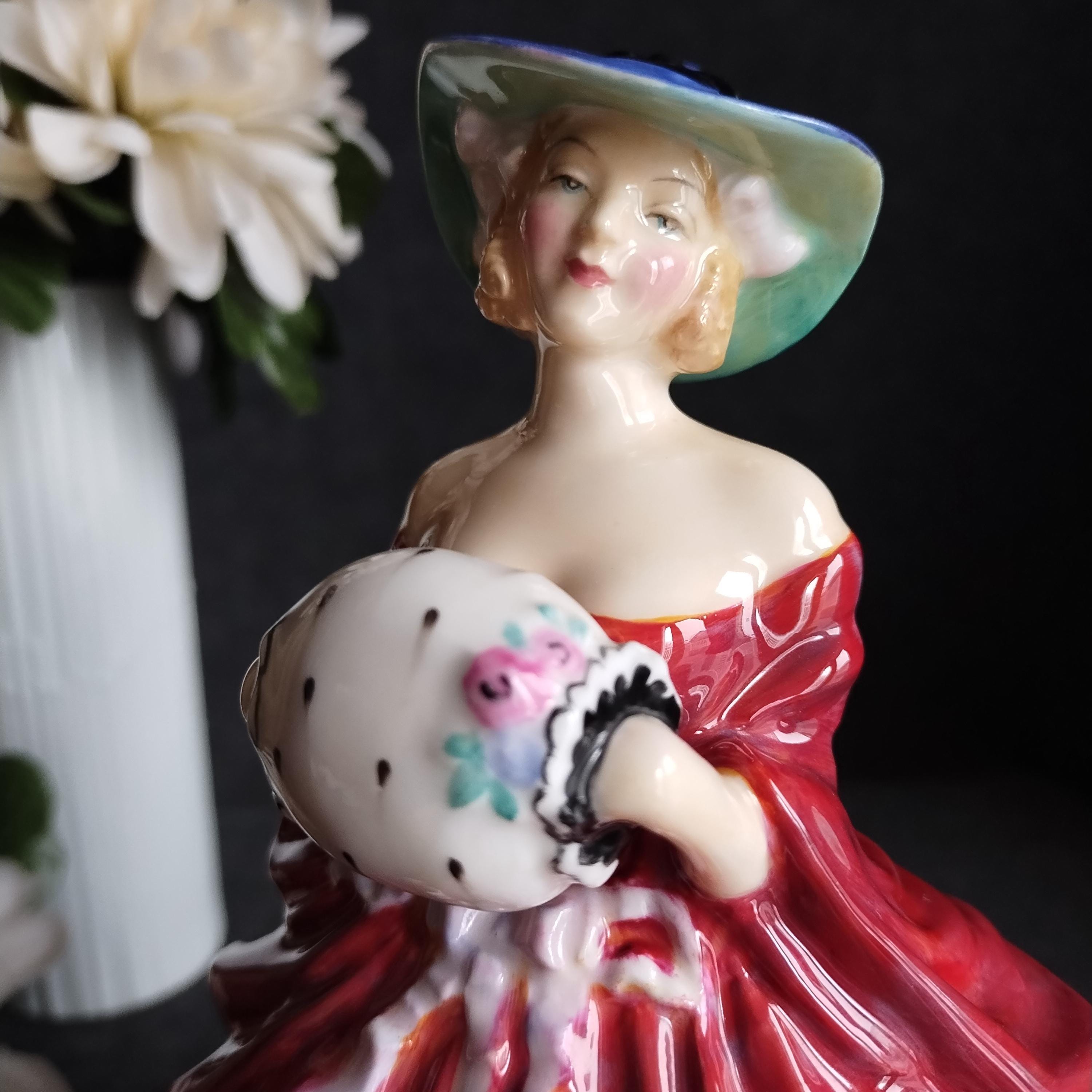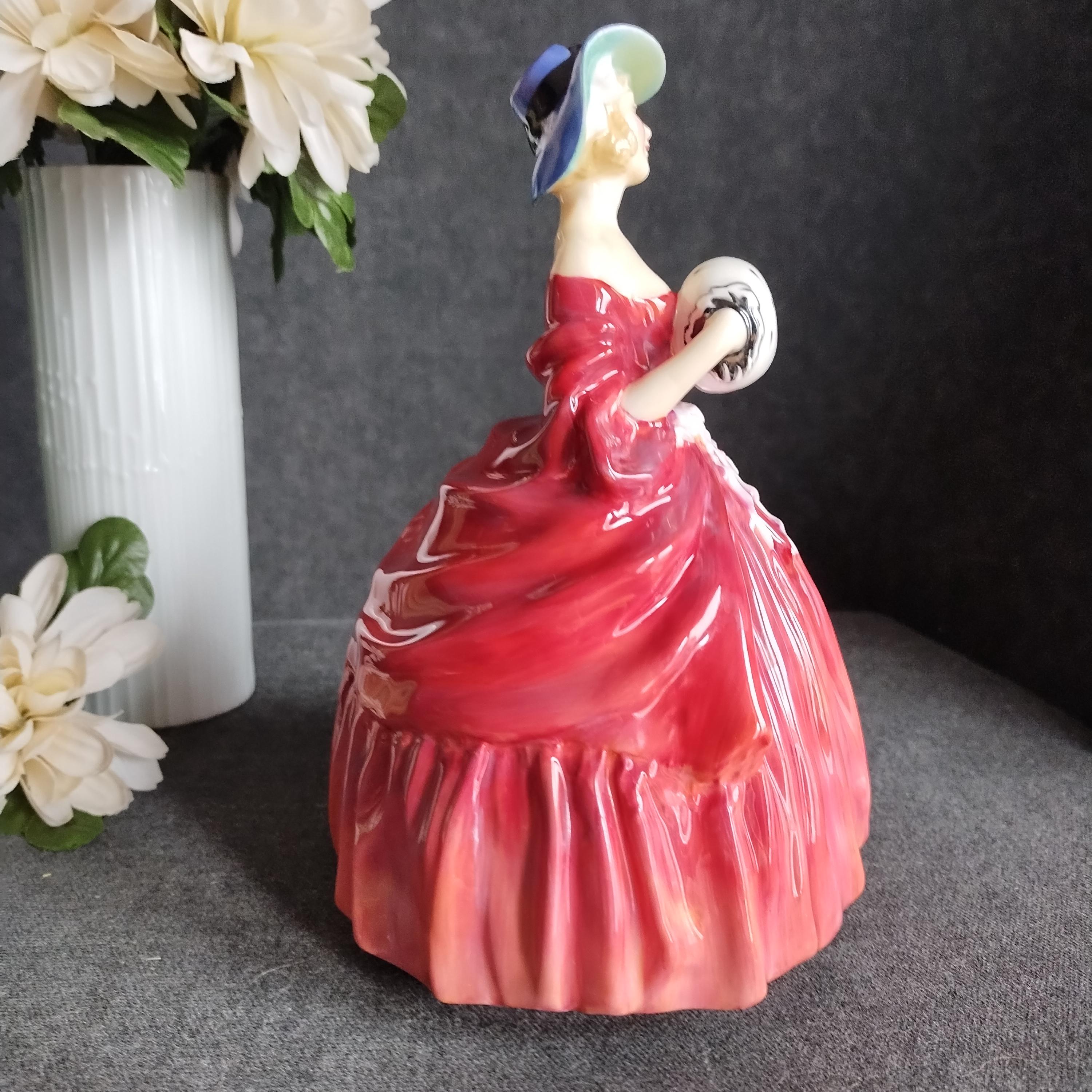Genevieve is dressed in an off the shoulder red dress with her hands in a white fur muff. Condition is excellent - no chips, cracks, repairs, or age-related crazing in the glaze.