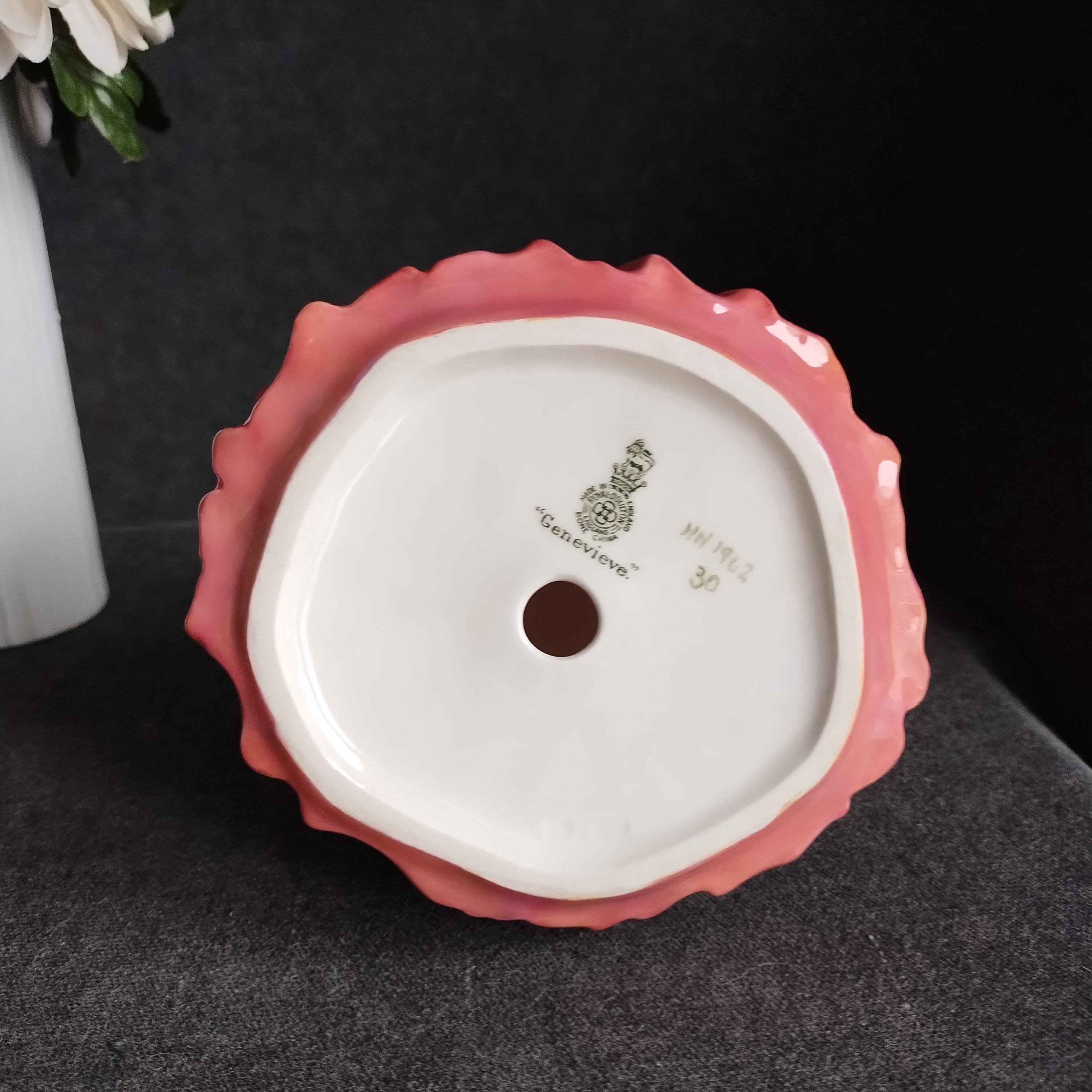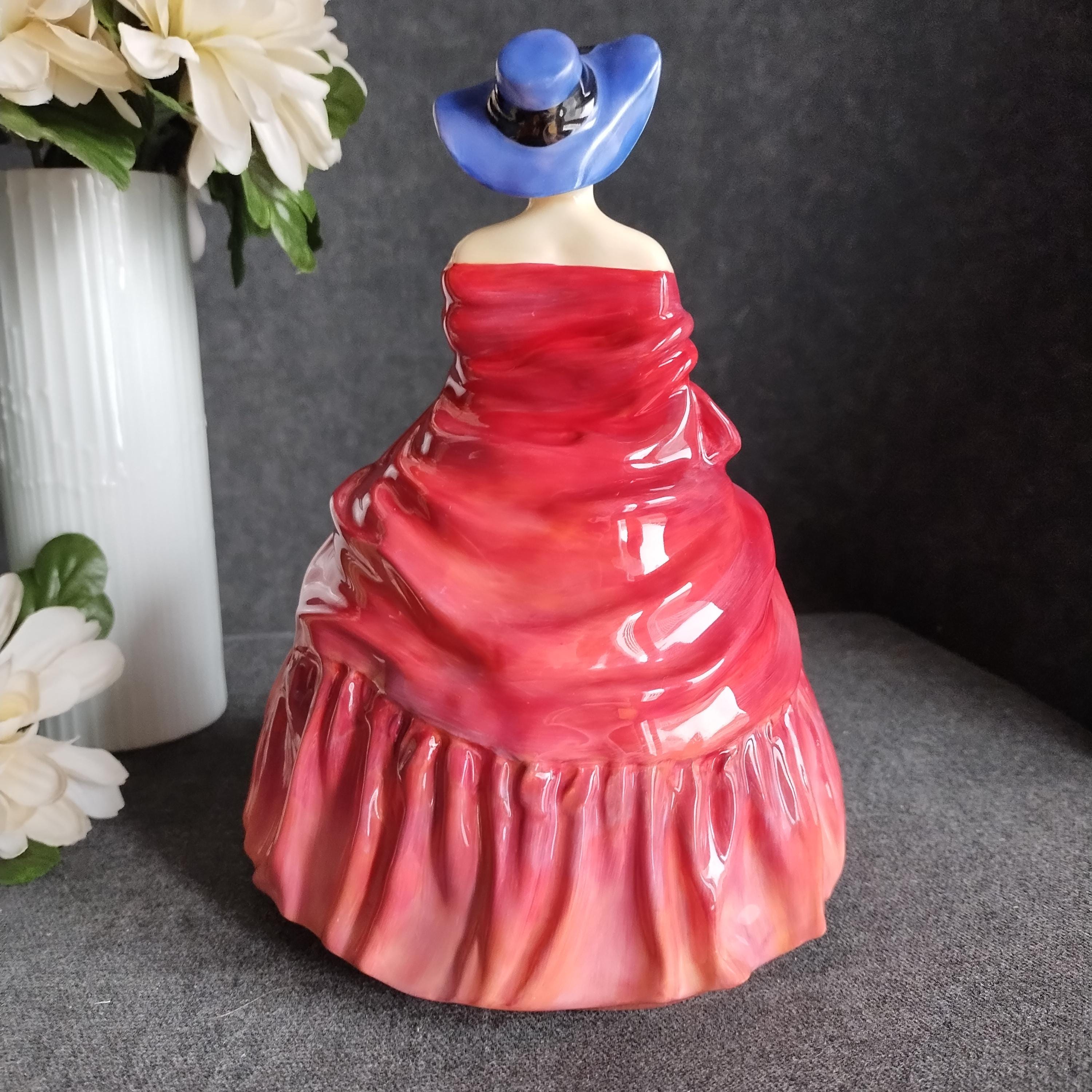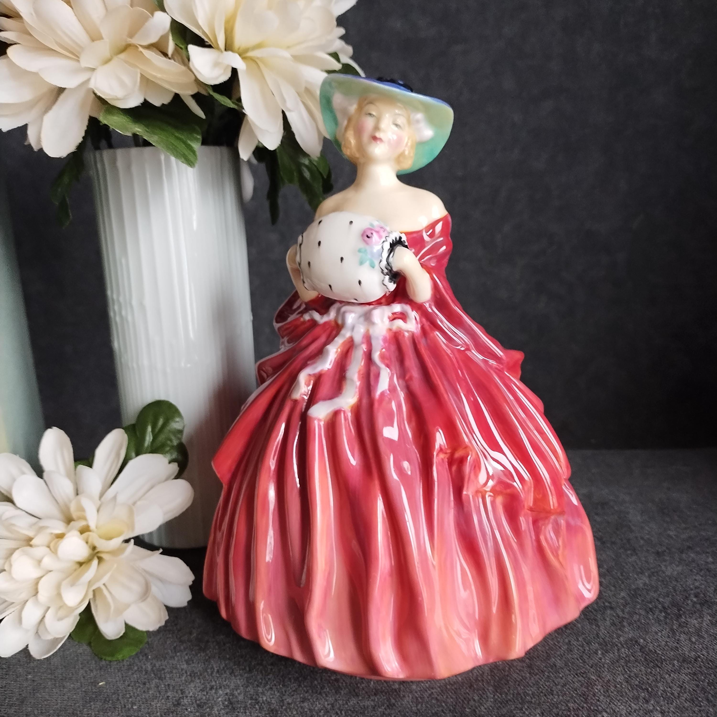 Genevieve is dressed in an off the shoulder red dress with her hands in a white fur muff. Condition is excellent - no chips, cracks, repairs, or age-related crazing in the glaze.